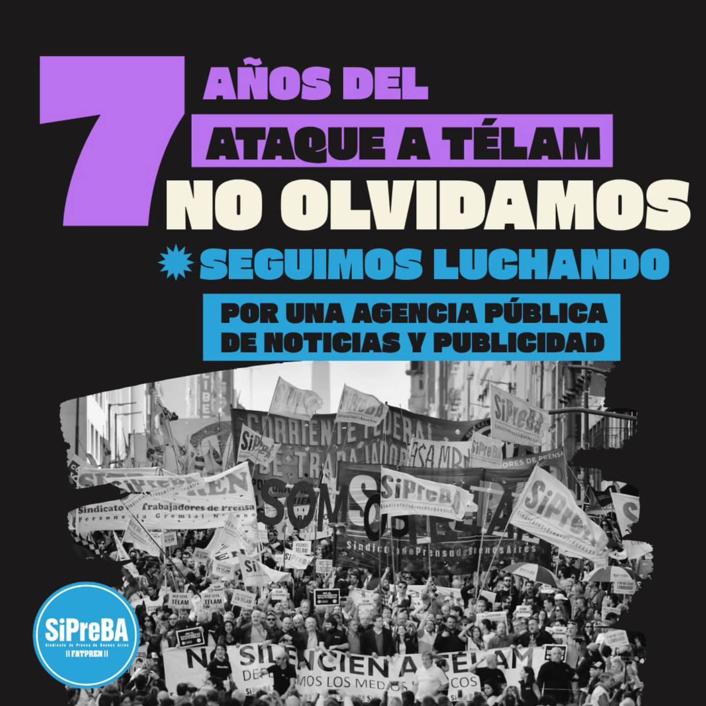 A 7 años del ataque a la agencia Télam por la gestión de Hernán Lombardi, el Sindicato de Prensa de Buenos Aires (SiPreBA) reafirma su lucha por una agencia pública de noticias y publicidad que garantice el derecho a la información de toda la sociedad.