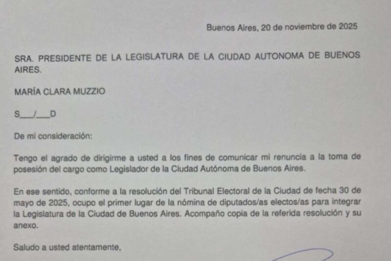 El jefe de Gabinete deja vacante el cargo para el que fue electo en los comicios porteños de mayo. Como candidato, había asegurado que las candidaturas testimoniales son “un fraude”.