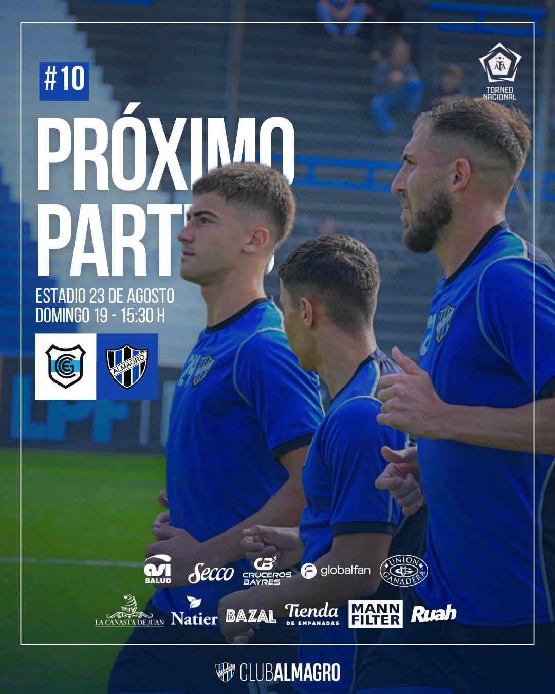 Almagro llega con la ilusión de romper su irregularidad en la Zona B, donde suma puntos valiosos pero necesita consistencia para meterse en la pelea por el ascenso. El equipo de Tres de Febrero viene de perder como local, y ahora busca una victoria lejos de José Ingenieros. Gimnasia (Jujuy), por su parte, es un rival duro en altura: los jujeños pelean por mantener el primer lugar en la zona y contarán con el impulso de su gente en el coloso del 23 de Agosto, un estadio que siempre complica a los visitantes.