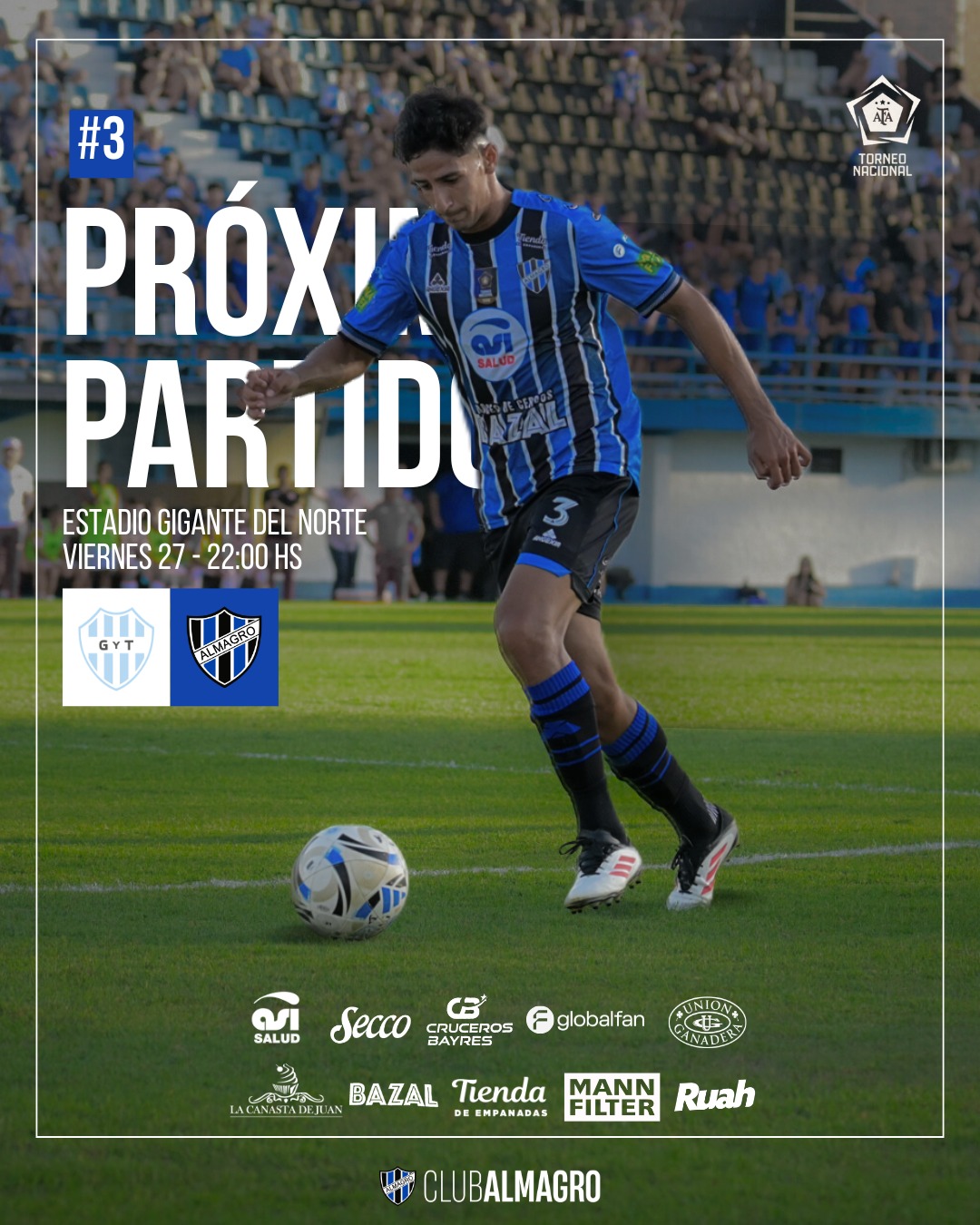 Salta, 27 de febrero de 2026 – El Tricolor de Almagro afronta un desafío mayúsculo esta noche en el norte argentino. Por la Fecha 3 del Torneo Federal A (Nacional B), el equipo dirigido por técnicamente se medirá ante Gimnasia y Tiro de Salta en el mítico Estadio Gigante del Norte, a partir de las 22:00 horas.