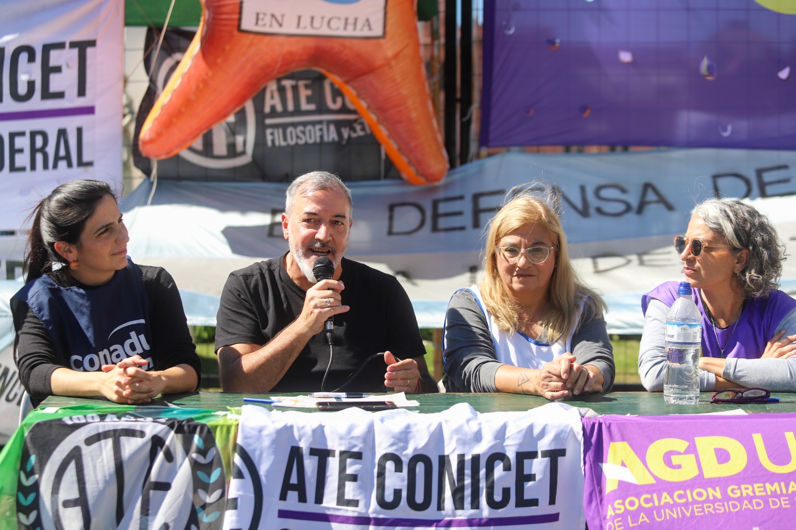 Buenos Aires, 10 de abril de 2026 – En el marco de la Jornada de Lucha convocada este viernes en defensa de la Ciencia, la Tecnología y la Universidad Pública, el secretario general de ATE nacional participó activamente del acto de apertura en Plaza de Mayo. Bajo el lema «Si no hay ciencia, hay dependencia», el gremio exigió una recomposición salarial urgente, la garantía de presupuesto para el sector y el fin del ajuste y desguace presupuestario.
