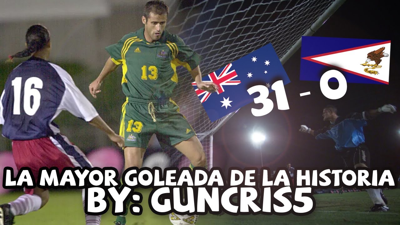 11 de abril de 2001. En eliminatorias para el Mundial Japón-Corea 2002, Australia aplasta 31-0 a Samoa Americana en Melbourne. Es la mayor goleada entre selecciones absolutas. Archie Thompson anota 13 goles; el primer tiempo acaba 16-0. El cartel erró: marcó 32, y periodistas contaron uno de más.