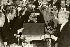 Los Reyes entregaron el premio en un acto con figuras como el ministro de Cultura Javier Solana. Borges agradeció «la lengua española, instrumento incomparable», evocando a Quevedo y Cervantes, y reflexionó sobre el tiempo y la eternidad, temas centrales de su poética.