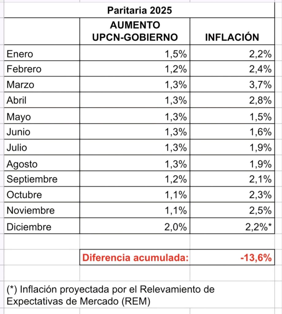 “En el 2025 quedamos 14 puntos por debajo de la inflación y desde que asumió Milei perdimos 4 salarios completos. Es muy difícil aceptar que existan otros sindicatos dispuestos a avalar semejante entrega”, agregó el dirigente estatal, quien sugirió además una especie de sociedad entre el sindicato firmante y el Gobierno para permitir el ajuste.