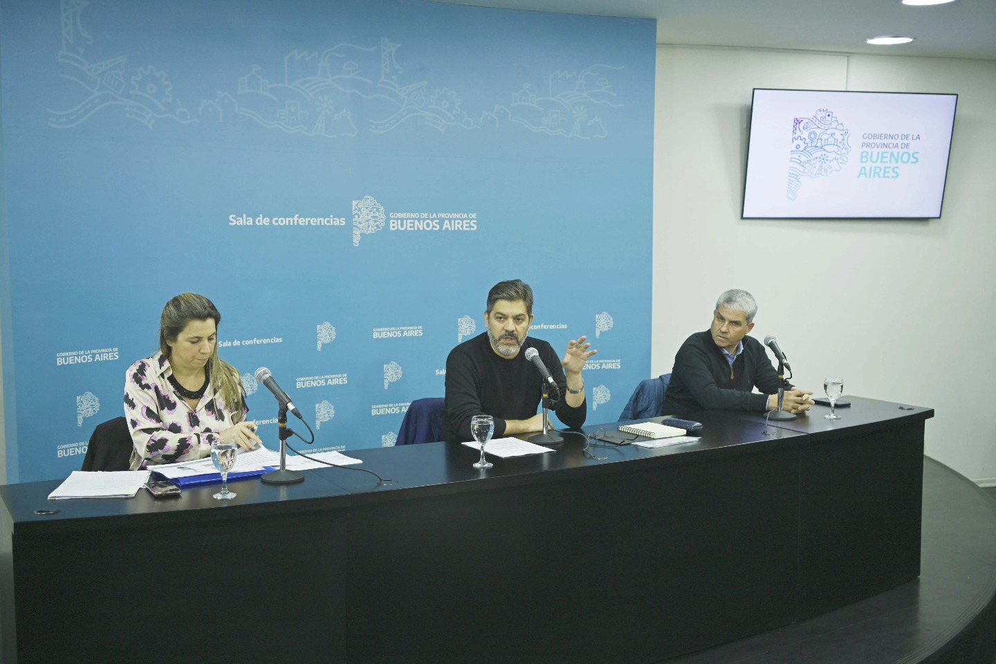 En la habitual conferencia de prensa realizada este lunes en la Casa de la Provincia de Buenos Aires, Carlos Bianco junto a la subsecretaria de Salud Mental, Consumos Problemáticos y Violencias, Julia Calmels, y el secretario de Derechos Humanos del Centro de Ex Combatientes de las Islas Malvinas de La Plata, Ernesto Alonso, abordaron temas clave de la actualidad nacional y provincial, repasando iniciativas del Gobierno bonaerense.