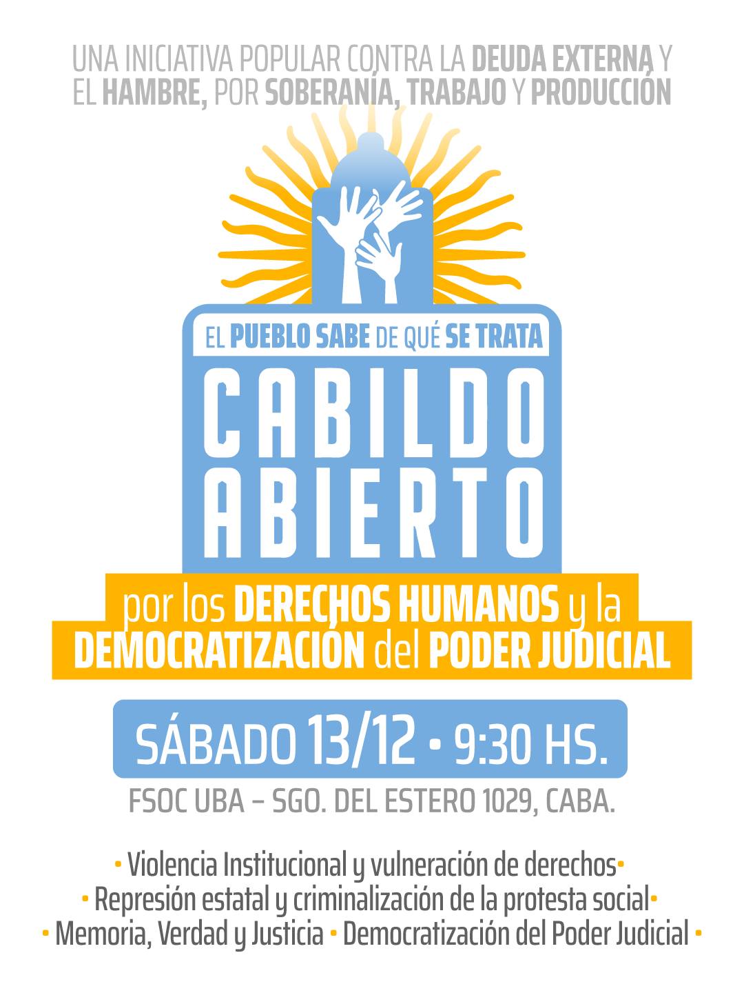 La CTA Autónoma convoca a participar del Cabildo Abierto que se realizará el próximo 13 de diciembre a las 9:30 horas en la Facultad de Ciencias Sociales de la UBA, ubicada en Santiago del Estero 1029, Ciudad Autónoma de Buenos Aires.