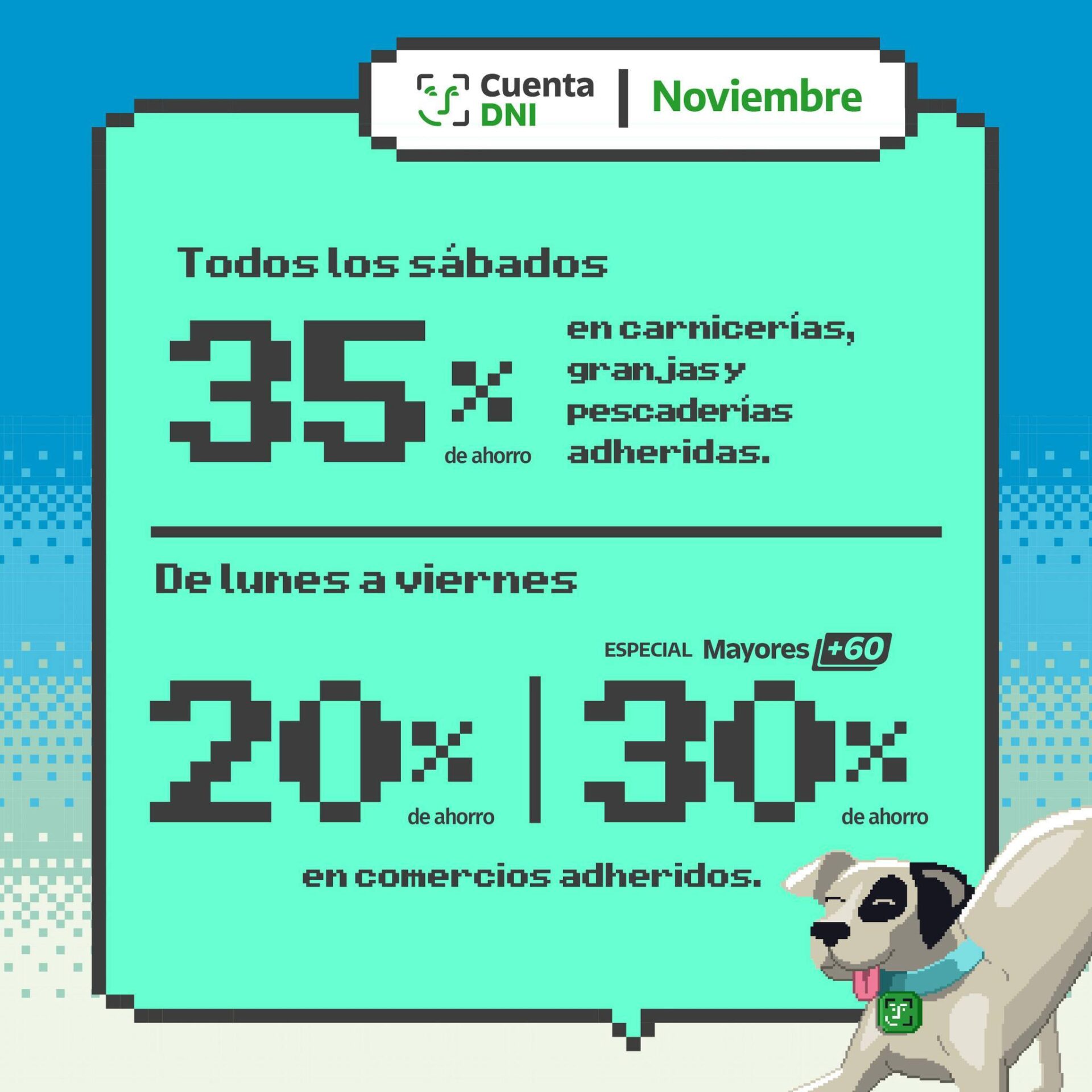 Descuentos en carnicerías y pescaderías: Durante todo el mes de noviembre, los usuarios de Cuenta DNI pueden disfrutar de un 35% de descuento en compras realizadas en estos establecimientos. Este beneficio se aplica todos los sábados, permitiendo a las familias ahorrar considerablemente en sus compras semanales.