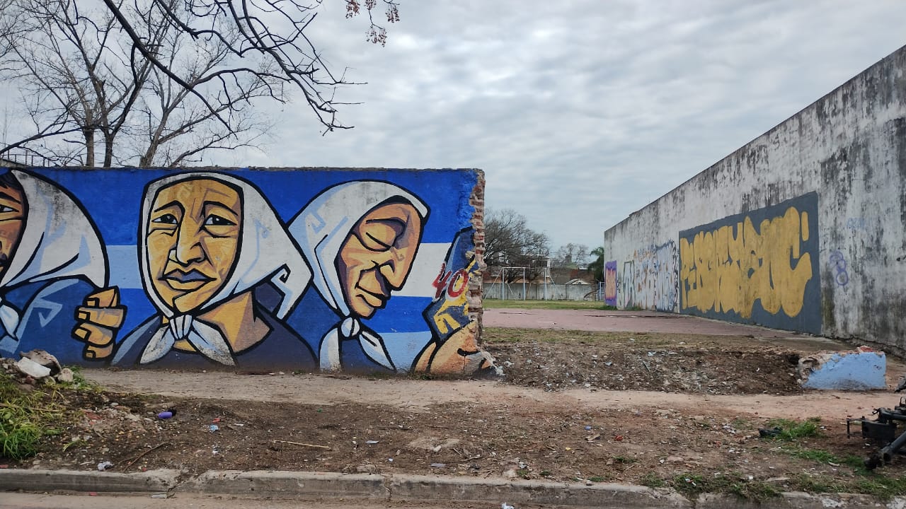 El mural está ubicado a pocos metros del lugar donde la compañera Alicia Amaya fue secuestrada el 3 de junio de 1978. Además, el sitio funcionó como lugar de votación de la actual vicepresidenta Victoria Villarruel, lo que añade una fuerte carga simbólica a este espacio.