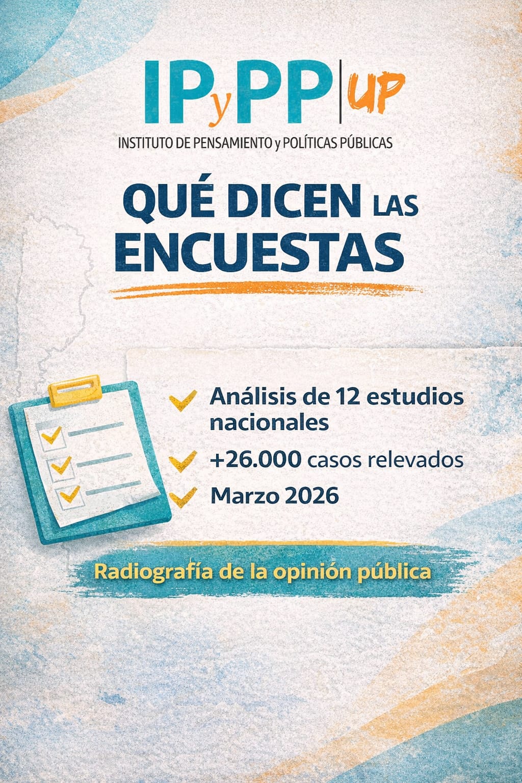 Buenos Aires, 4 de abril de 2026 – La desaprobación mayoritaria a la gestión de Javier Milei se consolida en marzo, con un promedio ponderado del 56-57%, según un informe integrado del Instituto de Pensamiento y Políticas Públicas (IPyPP). El análisis compara 12 estudios de opinión pública realizados entre el 1 y el 28 de marzo, con más de 26.000 casos muestrales y diversas modalidades (online, telefónica, presencial y mixta).