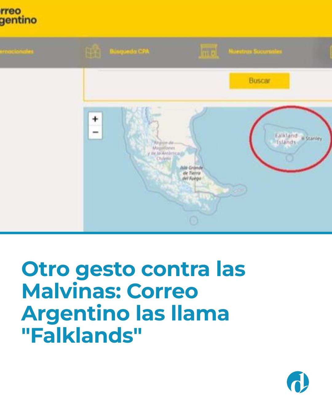 El Correo Argentino volvió a incurrir en un error inadmisible para una empresa estatal al publicar en su sitio web un mapa donde las Islas Malvinas aparecen bajo el nombre británico “Falkland Islands” y su capital como “Stanley”, ignorando que las Malvinas son parte innegociable del territorio argentino.