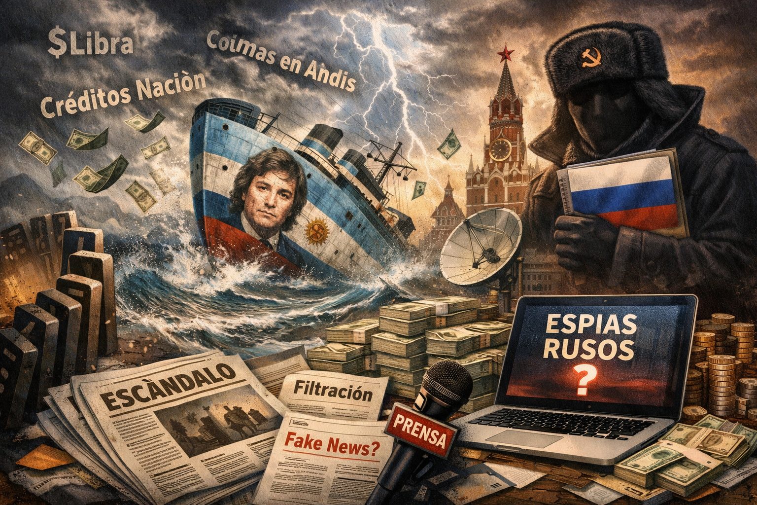 En medio de un vendaval de escándalos que parece hundir al barco mileísta —desde el caso $Libra, las coimas en Andis, los créditos millonarios del Banco Nación a funcionarios y diputados libertarios, hasta las sombras sobre el enriquecimiento de Manuel Adorni—, surge como un rayo la denuncia de un presunto espionaje ruso al gobierno argentino, con supuestos pagos a medios locales. ¿Casualidad o timing perfecto? La pregunta late en el aire, y por ahora, no hay respuestas judiciales que la despejen.