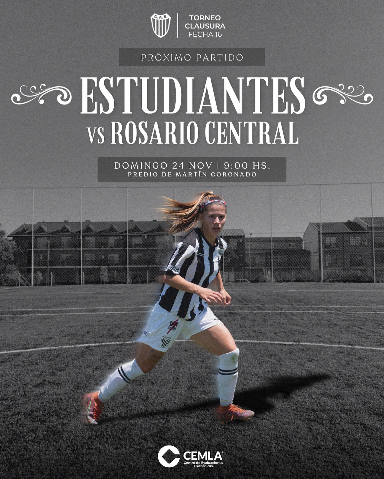 El próximo encuentro del fútbol femenino entre Estudiantes de Buenos Aires y Rosario Central se llevará a cabo el domingo 24 de noviembre a las 9:00 hs. en el Predio de Martín Coronado.