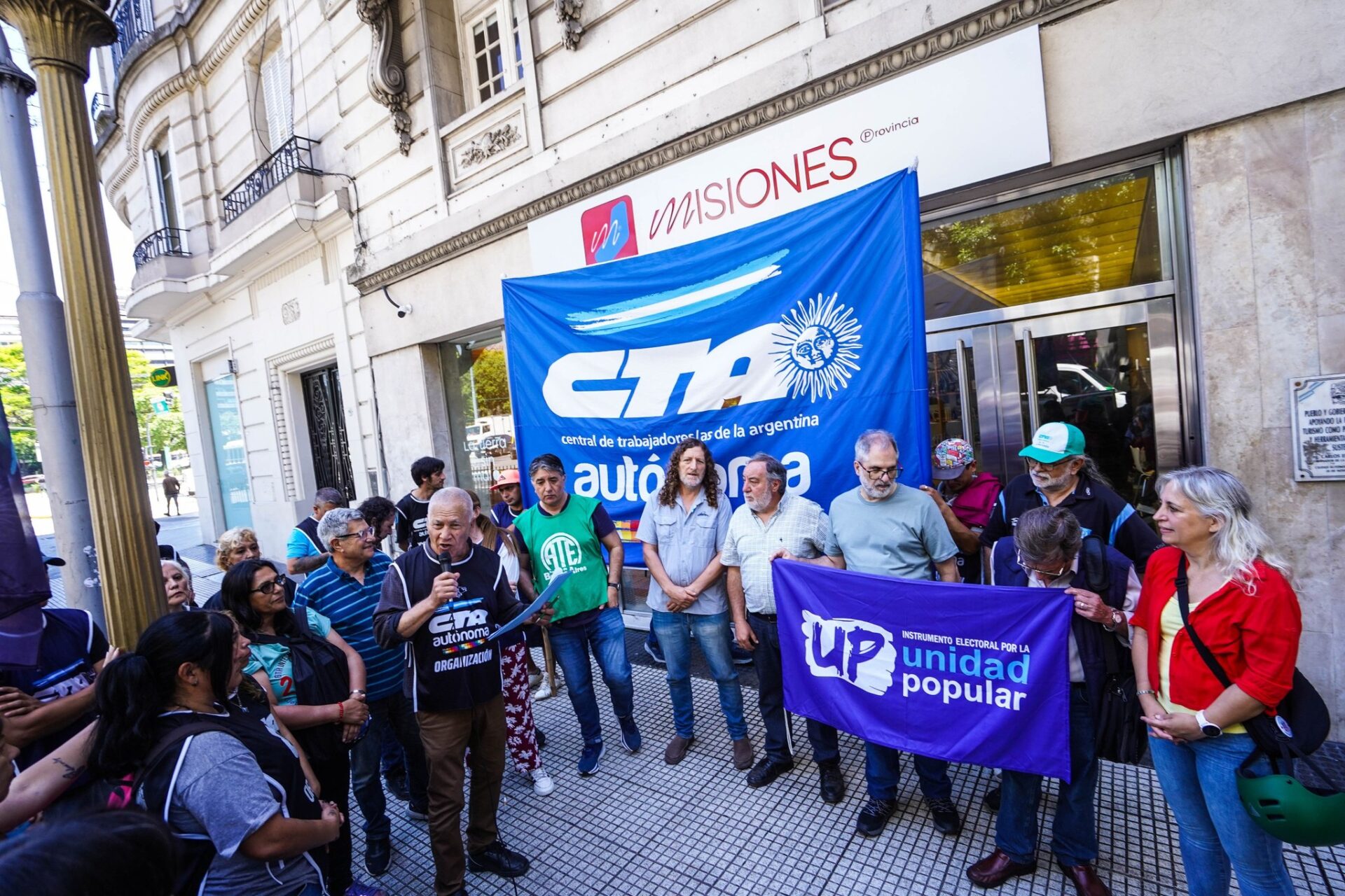 Posadas y Buenos Aires, 25 de noviembre de 2025 – La Central de Trabajadores de la Argentina (CTA Autónoma), junto con Unidad Popular y ATE, realizó una movilización simultánea en las puertas de la Casa de la Provincia de Misiones y en la Capital Federal para repudiar el inicio del juicio contra Mónica Gurina y Leandro Sánchez, dirigentes de la CTA de Misiones, perseguidos judicialmente por su defensa de los derechos laborales.