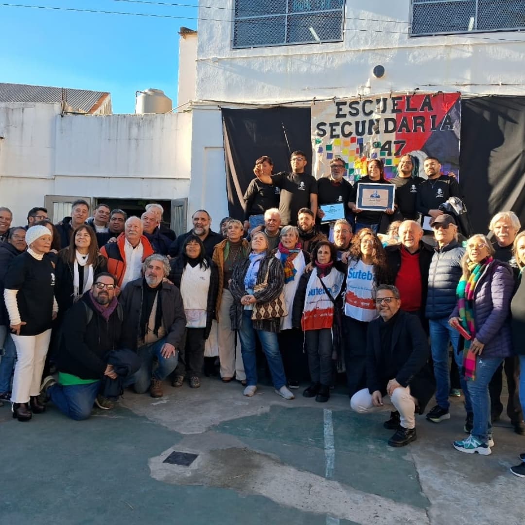 En la Escuela N°47 de La Carcova, San Martín, se vivió una jornada cargada de emoción y memoria colectiva. Familiares de Osvaldo Bayer, junto a representantes de SUTEBA, ATE, la CTA Autónoma de Tres de Febrero, autoridades educativas y la comunidad escolar, se congregaron este viernes para rendir homenaje al destacado escritor, periodista y defensor de los derechos humanos.