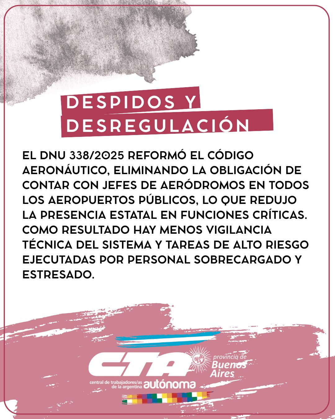 La CTA Autónoma de Buenos Aires, junto con ATE ANAC, alertan sobre un grave peligro para la seguridad aérea en Argentina debido a los despidos masivos de profesionales y la desregulación impulsada por el gobierno de Javier Milei y Federico Sturzenegger.