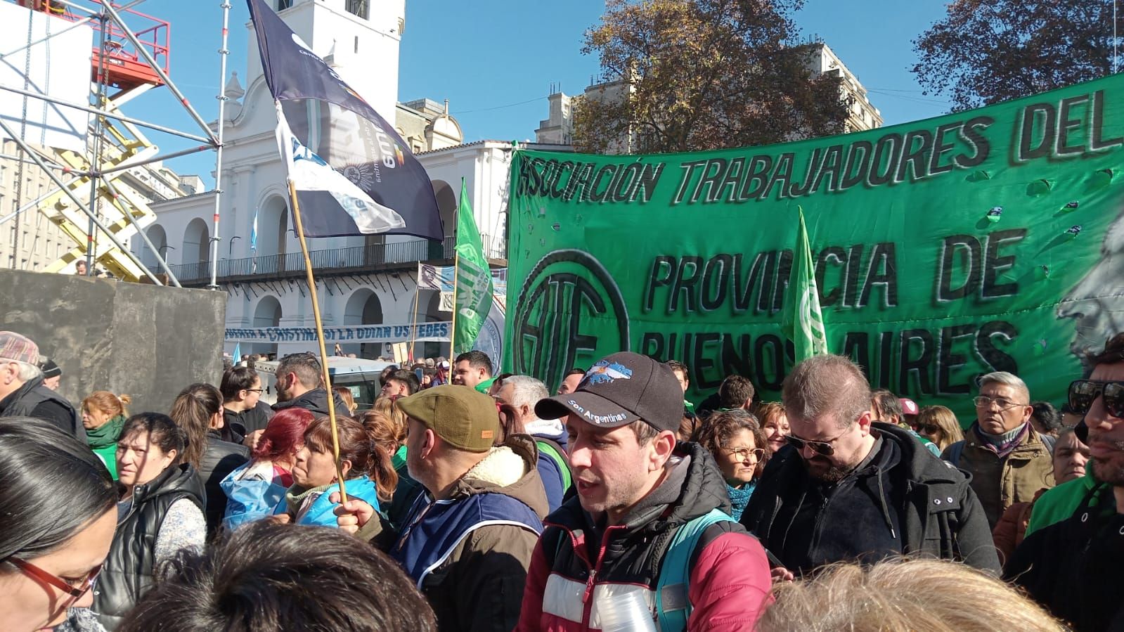 La CTA Autónoma concentró desde el mediodía en Avenida de Mayo y Piedras, sumando su presencia a la de otros gremios y organizaciones sociales. Entre los sectores movilizados estuvieron también la Confederación General del Trabajo (CGT), la Federación Judicial Argentina (FJA), Nuevo Encuentro, Principios y Valores, el Movimiento Evita, Barrios de Pie, el Polo Obrero y el Nuevo MÁS, en una muestra de unidad frente a lo que consideran un ataque a la democracia y al derecho del pueblo a elegir libremente a sus candidatos.
