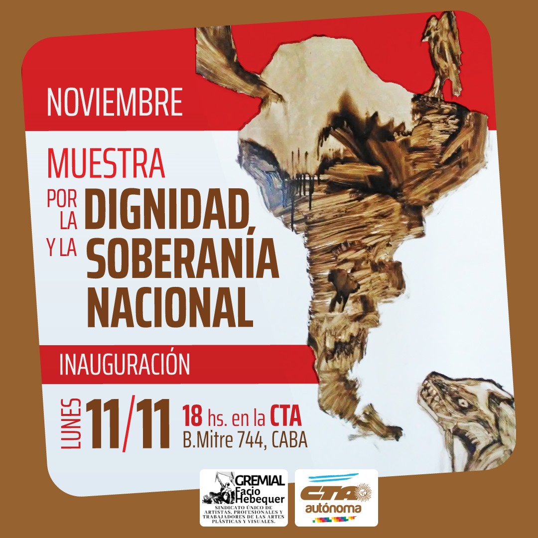 La muestra por la dignidad y la soberanía nacional organizada por la CTA Autónoma se inaugurará el 11 de noviembre a las 18 horas en su sede nacional, ubicada en Bartolomé Mitre 744, Buenos Aires.