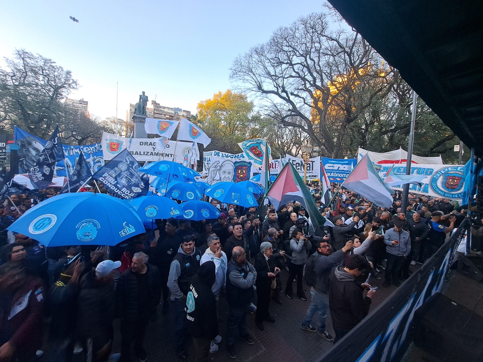 Los dirigentes sindicales y representantes de las organizaciones sociales aprobaron el acto para exigir la convocatoria urgente a un diálogo pacífico y el respeto irrestricto a los derechos humanos, además de reclamar políticas orientadas a proteger la vida y la dignidad de la población palestina.