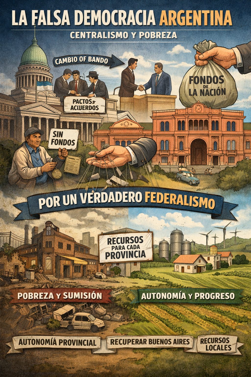 Urge reformar el sistema para garantizar autonomía provincial, permitir que cada distrito recaude y decida sobre sus recursos sin la sustracción constante de la Nación, y devolver la capital a la Provincia de Buenos Aires, entre otras medidas estructurales. Solo así se logrará un federalismo genuino que beneficie a todos los argentinos.