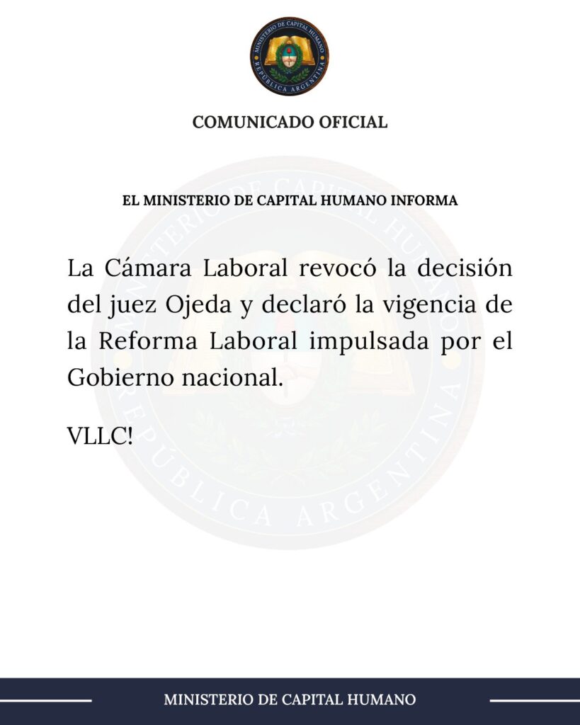 La decisión, firmada por los jueces María Dora González y Víctor Arturo Pesino, modifica la resolución del 7 de abril que había concedido la apelación gubernamental solo “en relación y con efecto devolutivo”. Ahora, con el efecto suspensivo, la suspensión de la ley impulsada por la CGT queda en pausa hasta que el tribunal de alzada se expida de manera definitiva, lo que implica que la Reforma Laboral vuelve a estar en vigencia en su totalidad.