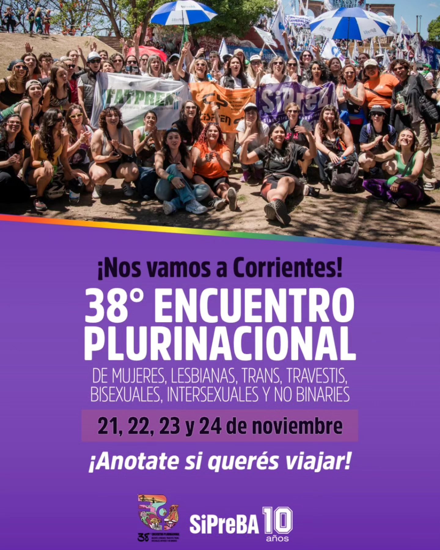 El Sindicato de Prensa de Buenos Aires (SIPREBA), a través de su Secretaría de Géneros, está organizando su participación en el 38° Encuentro Plurinacional de Mujeres, que se llevará a cabo del 21 al 24 de noviembre en la ciudad de Corrientes.
