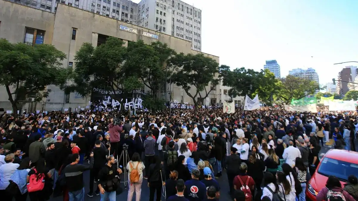 Médicos, estudiantes, docentes y pacientes realizaron un multitudinario «abrazo solidario» frente a las puertas del Hospital de Clínicas por la baja del presupuesto a la Universidad de Buenos Aires, hecho por el que varias universidades recortaron gastos para solventar otros.