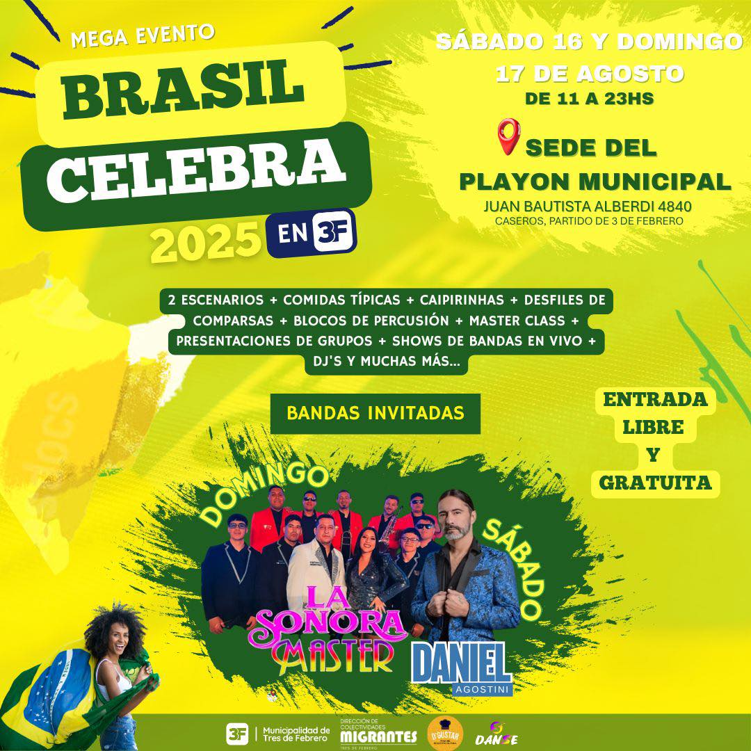 Los días sábado 16 y domingo 17 de agosto de 2025 se vivirá un gran festival en la localidad de Caseros, en el municipio de Tres de Febrero, que celebrará la cultura brasileña con una gran propuesta artística y gastronómica totalmente libre y gratuita.