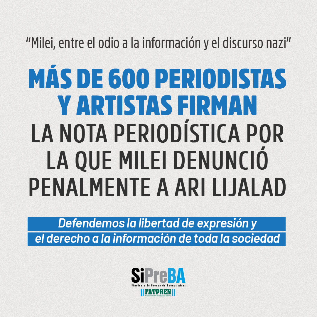 Ante la convocatoria, más de 600 periodistas y artistas se sumaron a firmar como propia la nota denunciada, la cual re-publicamos a continuación junto a todos esos apoyos.