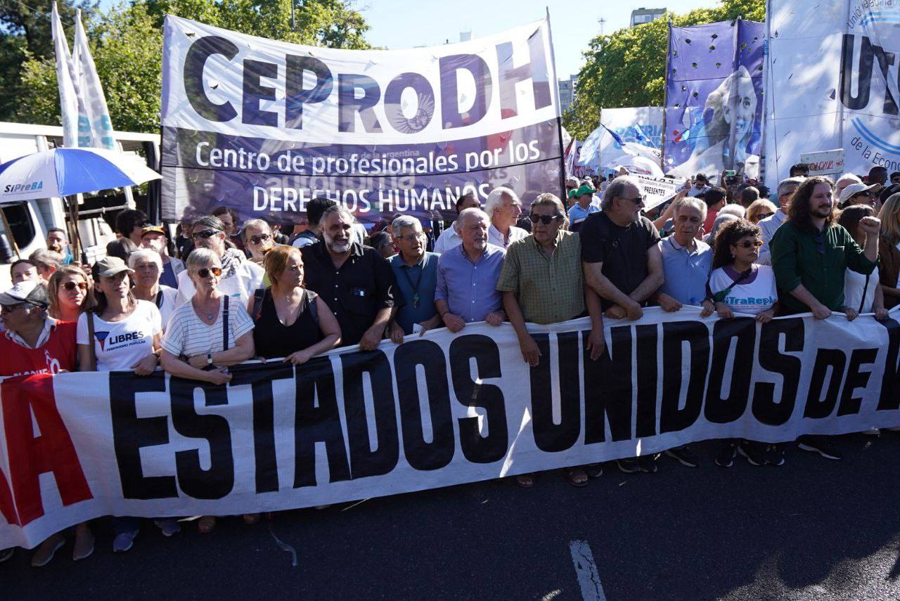 El acto incluyó discursos encendidos contra el «lawfare» y las sanciones económicas impuestas por Washington a Caracas, así como un fuerte apoyo a la soberanía del pueblo Venezolano, a quien se lo presentó como continuador de la legado chavista. Banderas venezolanas flamearon al lado de las argentinas y pañuelos verdes en referencia a la unidad regional. «La Revolución Bolivariana es un faro para los pueblos oprimidos; no dejaremos que la OTAN y sus títeres la apaguen», sentenció una oradora de Madres de Plaza de Mayo Línea Fundadora, presente en la movilización.