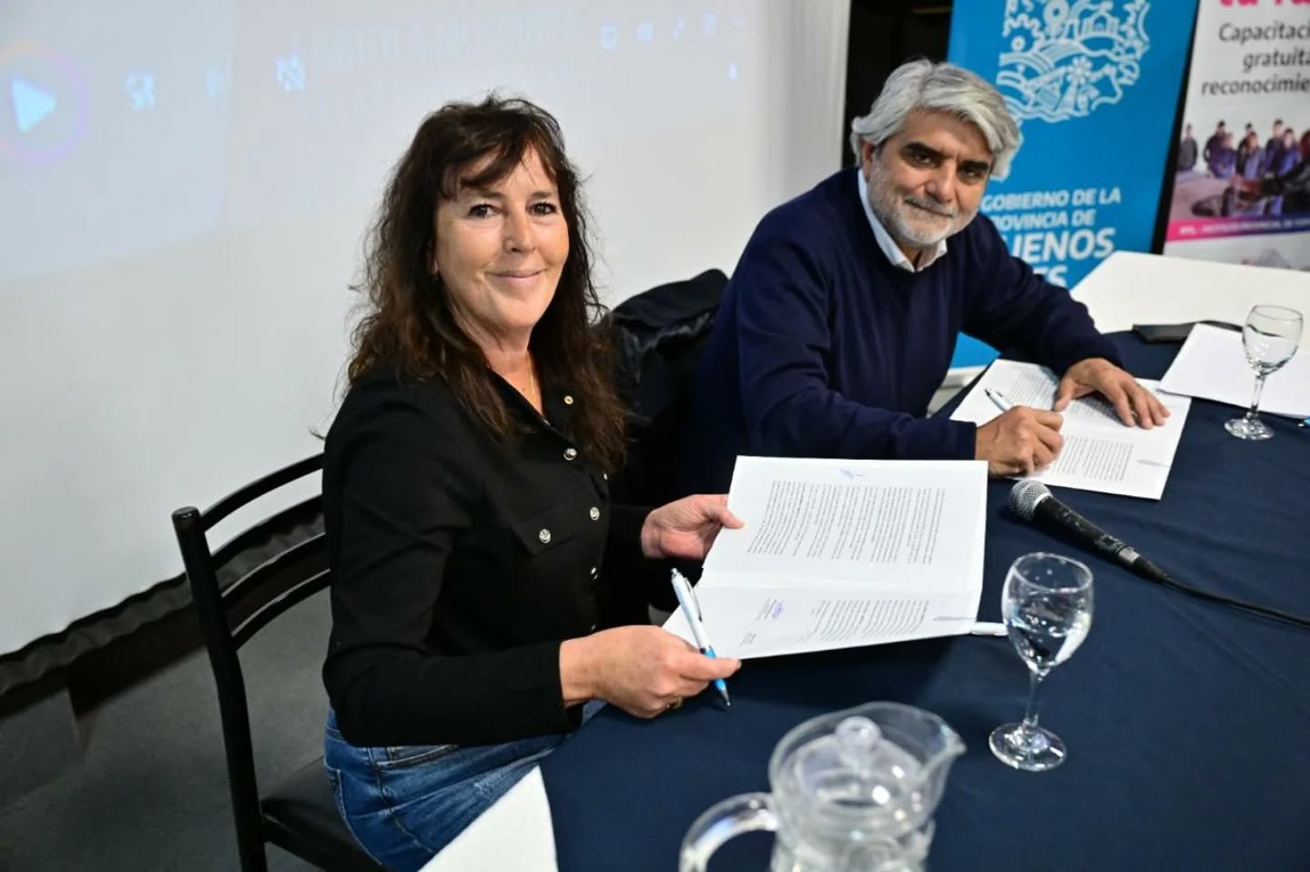 El ministro de Trabajo bonaerense, Walter Correa, junto a la secretaria general de UPCN Buenos Aires, Fabiola Yañez, firmaron un importante convenio a través del Instituto Provincial de Formación Laboral (IPFL) para el ordenamiento y fortalecimiento de los Centros de Formación Laboral (CFL) en diversas localidades de la provincia.