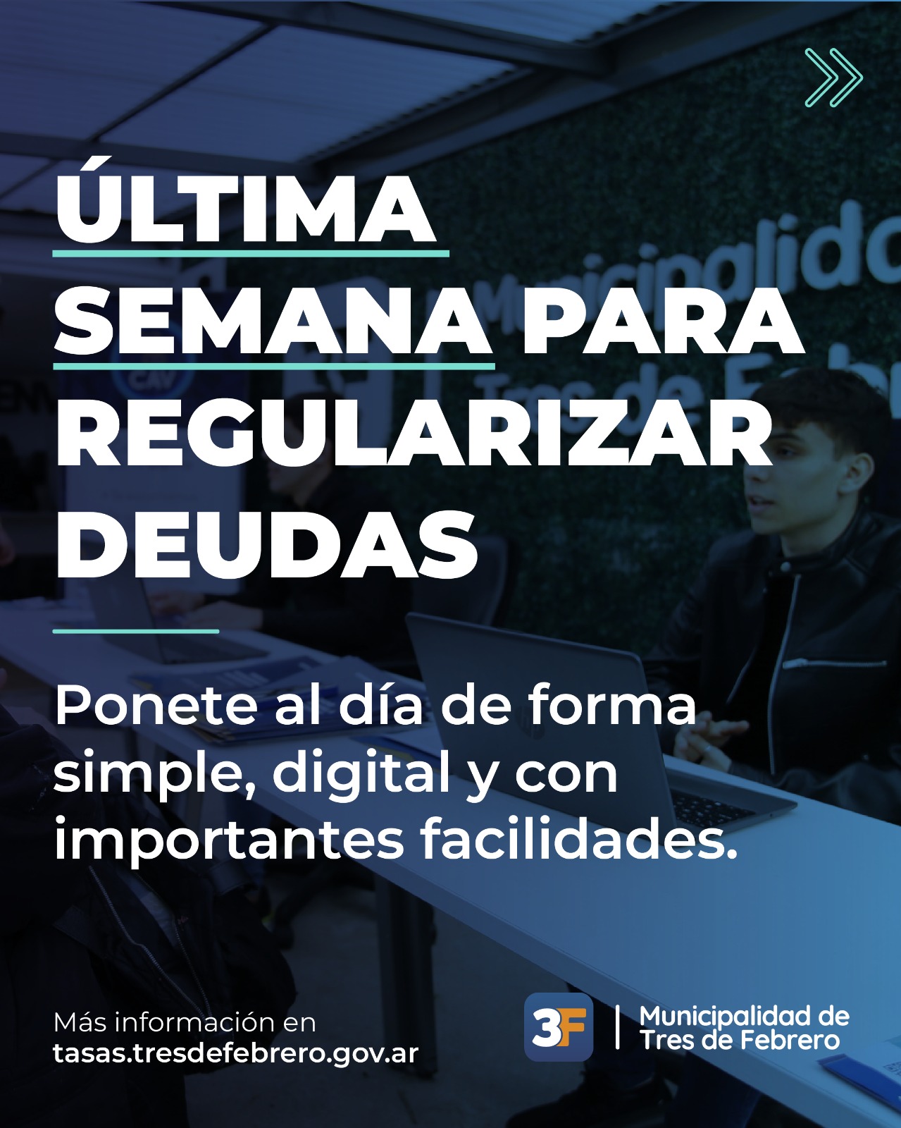La Municipalidad de Tres de Febrero anunció un nuevo Plan de Regularización de Deudas, con un plazo hasta el 15 de noviembre de 2025 para que los vecinos y vecinas puedan ponerse al día con sus tasas municipales de manera simple y digital. La iniciativa busca facilitar la recaudación por deudas atrasadas, con grandes beneficios para quienes adhieran a la moratoria vigente.