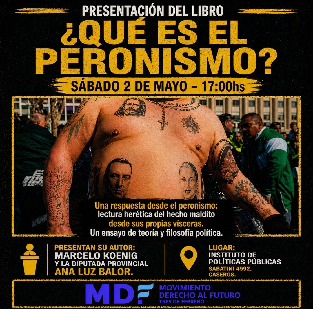 Este sábado 2 de mayo, el Instituto de Políticas Públicas “Construir Tres de Febrero” será sede de la presentación del libro ¿Qué es el peronismo?, escrito por Marcelo Koenig, abogado, docente y secretario general de la Corriente Peronista Descamisados.