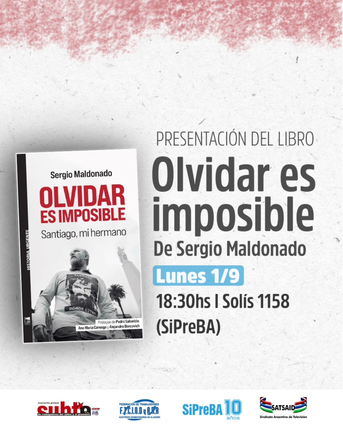 El Sindicato de Prensa de Buenos Aires (SIPREBA), junto a otras organizaciones como la agrupación Prensa del Subte, los Aceiteros de Motos y SATSAID Nacional, invitan a la comunidad a participar de la charla-presentación del libro “Olvidar es imposible” , escrito por Víctor “Vikingo” Maldonado.