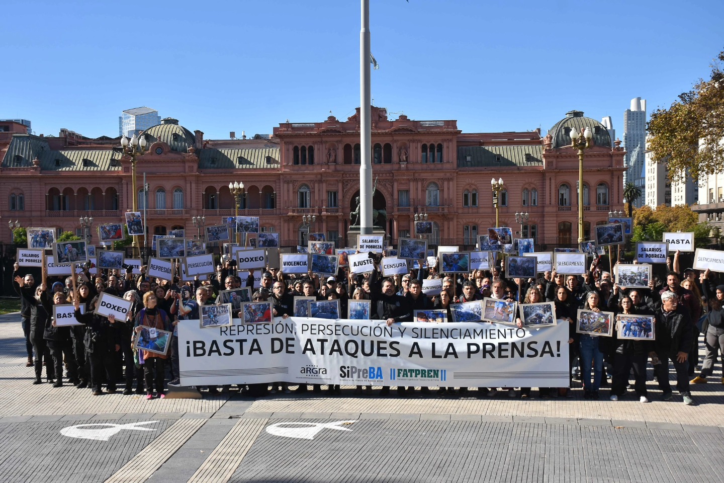 “Concentración en Plaza de Mayo con una única consigna para defender la libertad de expresión y el derecho a la información, frente a ataques a la prensa.”