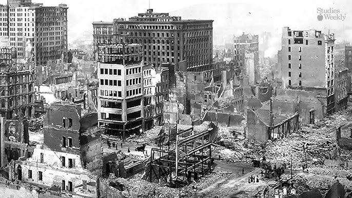 El epicentro se ubicó en el océano Pacífico, a 3 kilómetros de la costa, y la onda sísmica se sintió hasta Los Ángeles. El fuego, alimentado por rupturas en cañerías de gas y agua, destruyó 28.000 edificios y dejó un panorama apocalíptico: calles agrietadas, el Palacio de Bellas Artes en ruinas y el puente de Oakland colapsado. Miles durmieron en parques y plazas, mientras el Ejército de EE.UU., bajo el mando del general Frederick Funston, tomaba el control para sofocar las llamas con dinamita.