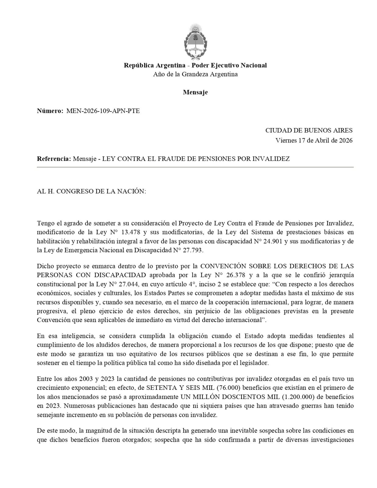Tres de Febrero, 20 de abril de 2026 – La diputada nacional de Unión por la Patria, Victoria Tolosa Paz, presentó un proyecto de ley para combatir lo que denunció como “fraude” en las pensiones por invalidez, pero apuntó directamente contra el Gobierno de Javier Milei por un supuesto nuevo ajuste que recorta derechos a los más vulnerables.