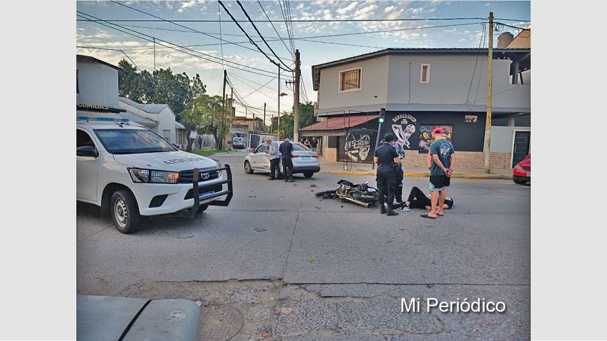 La moto era ocupada por dos personas. El conductor no sufrió heridas, pero el acompañante salió despedido y quedó tendido sobre el pavimento con politraumatismos.