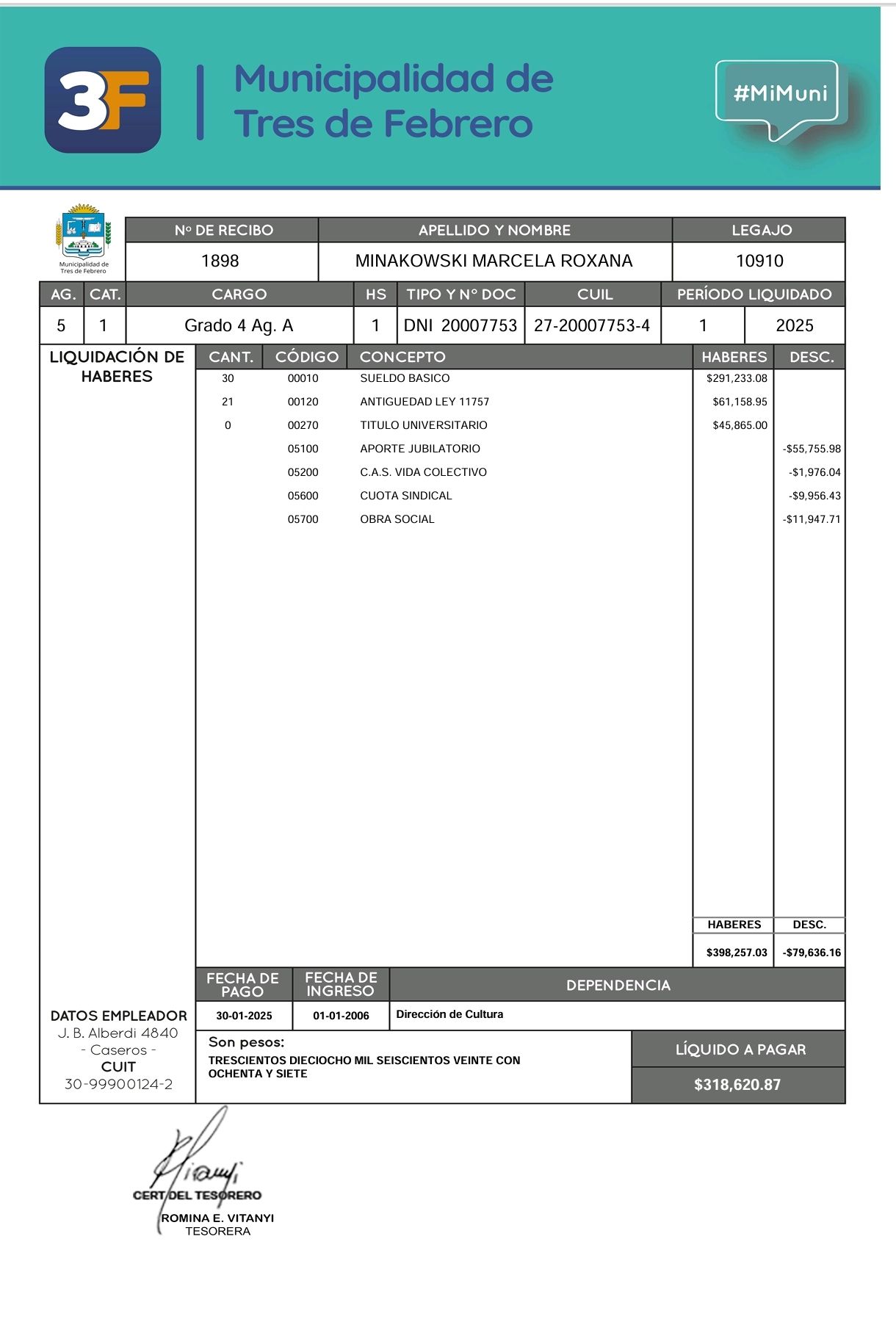 En un comunicado que circula en redes sociales, una trabajadora municipal de Tres de Febrero reveló su renuncia tras 22 años de servicio, denunciando salarios de miseria, intentos de despidos y un clima laboral hostil bajo la gestión de Diego Valenzuela (ex PRO, actual LLA). La exfuncionaria, cuyo nombre se preserva por seguridad, detalló cobrar 318.000 pesos en mano (de los cuales 100.000 correspondían a antigüedad y título universitario), un monto que contrasta con los salarios de jóvenes contratados, que triplican esa cifra.