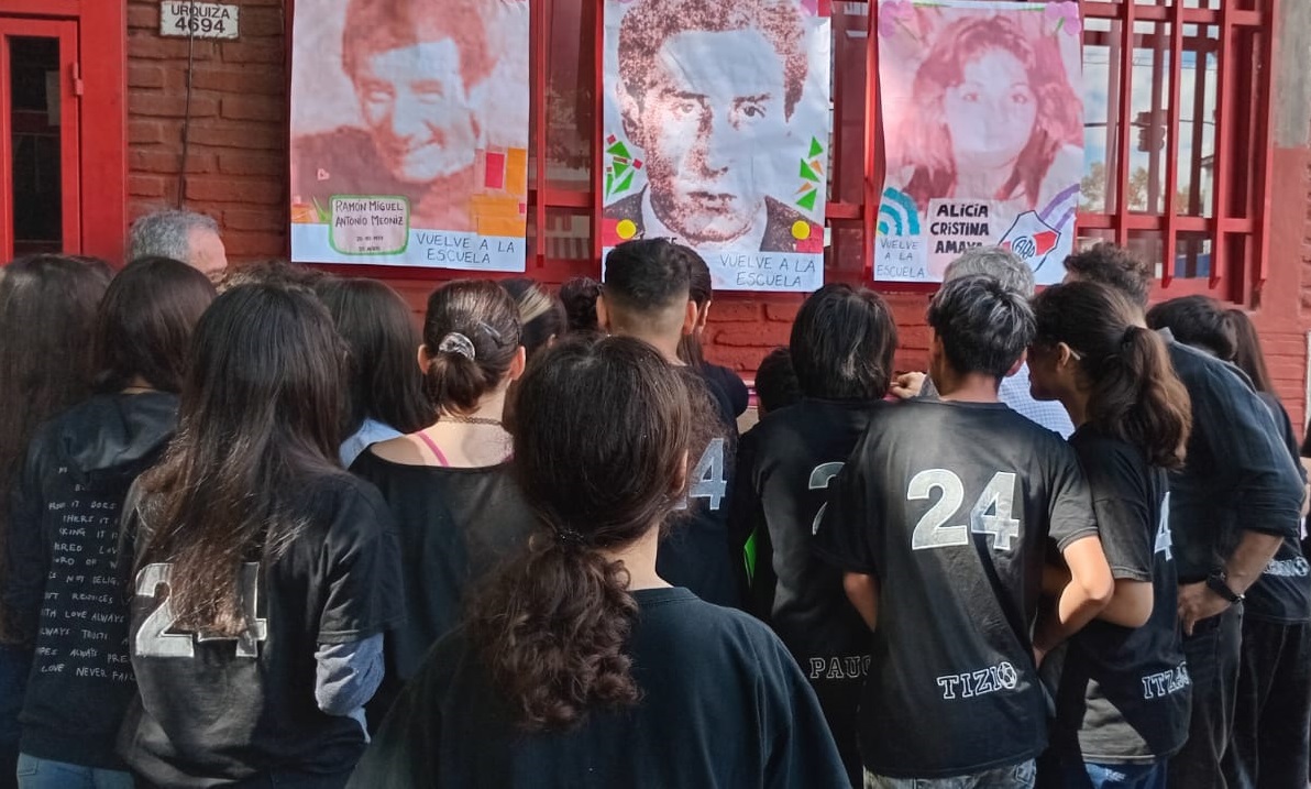 Hoy, un grupo de exalumnos de la Escuela Primaria Nº 45, compuesto por Alicia, Marita, José Manuel, Bernardo, Ramón y Jorge, regresó a su antigua escuela para celebrar la inauguración de un nuevo espacio de memoria en Tres de Febrero.