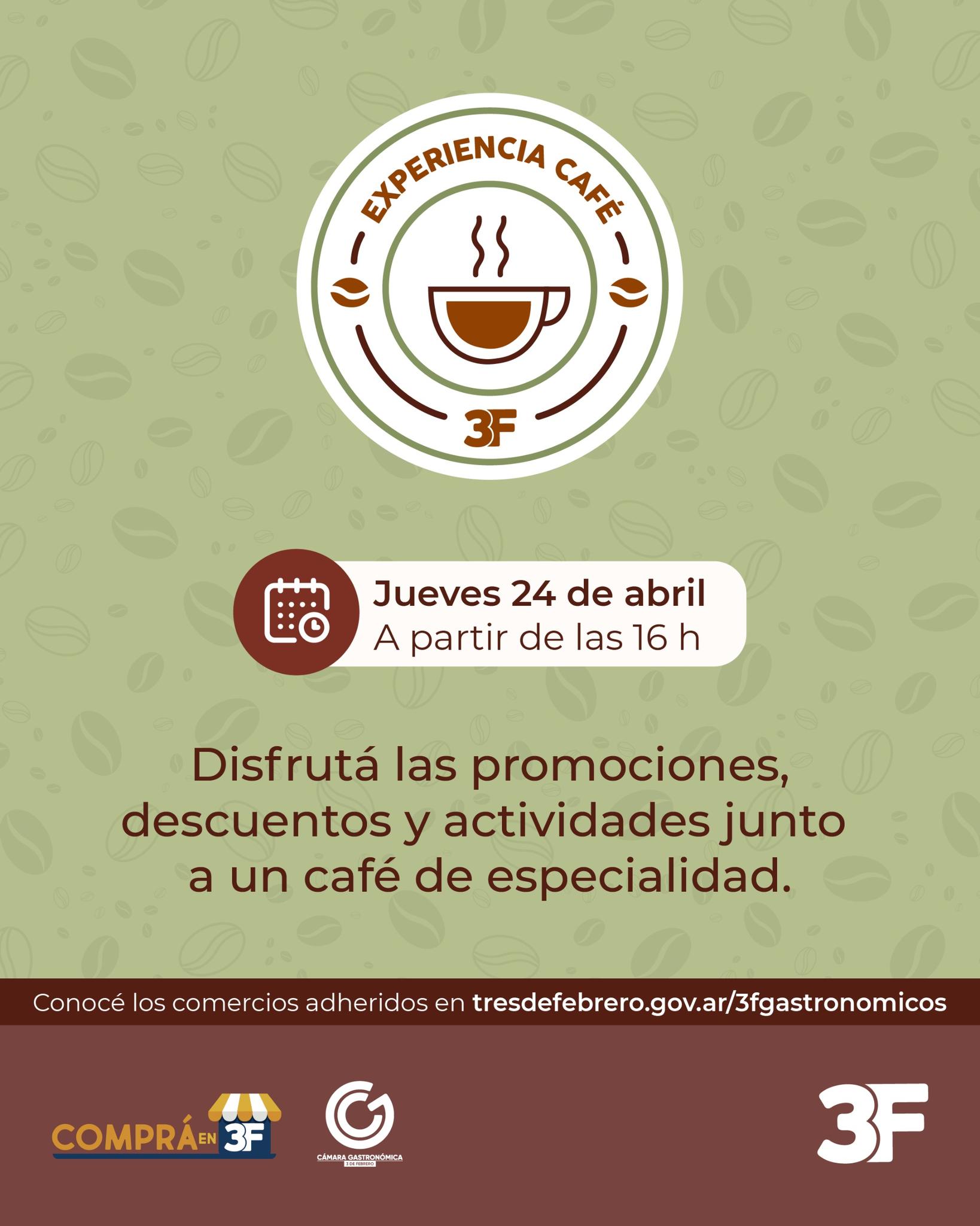 Este jueves 24 de abril, Tres de Febrero se prepara para vivir una jornada especial dedicada al café con la “Experiencia Café 3F”. Desde las 16 horas, los comercios adheridos del distrito ofrecerán descuentos, promociones y actividades para que los amantes del café puedan disfrutar de esta bebida tan emblemática junto a algo rico para acompañar.