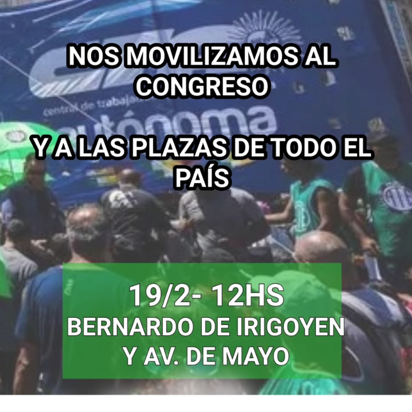 La organización llamó a «parar la reforma laboral en el Congreso y en la calle». En la Ciudad Autónoma de Buenos Aires (CABA), la concentración está prevista para las 12:00 hs en Bernardo de Irigoyen y Av. de Mayo, con el objetivo de presionar contra el avance del proyecto.
