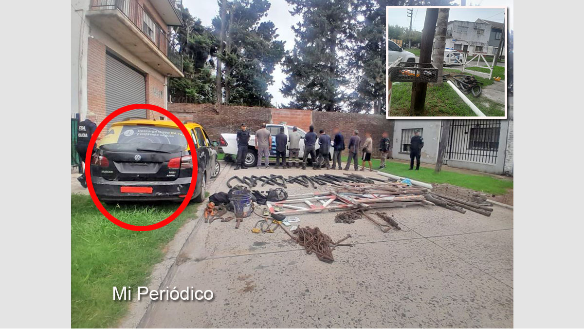 Más móviles policiales arribaron al lugar y secuestraron escaleras, sogas, vallas, elementos de corte y pedazos de cable de cobre de alrededor de un metro.